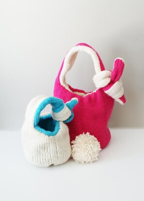 Knit Bunny Baskets, Adjustable and Reversible (bowls004)