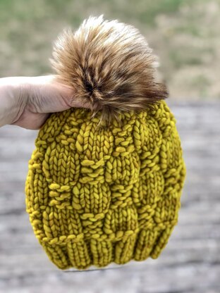 This is a PDF knit pattern to make a textured hat with 4 different yarn weights (#4 worsted weight, #5 bulky, #5 light bulky, or #6 super bulky). Written for adult size but suggestions included for adjusting size.