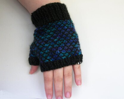 2 colors striped give this fingerless gloves pattern a smooth scale look.