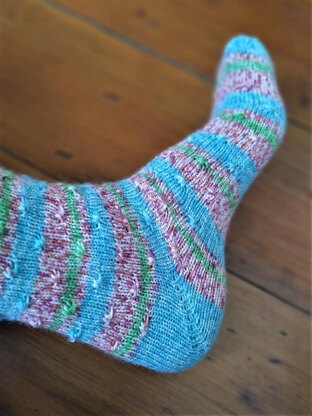 I wanted to use a pattern which would provide a little extra detail rather than a plain striped sock, but not compete with the colour too much. These little knots are simple to work and add just the required amount of interest.