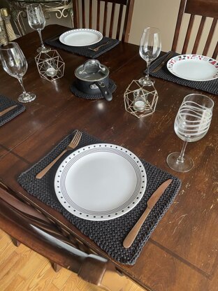 These beautiful knit placemats add a personal and cozy touch to your kitchen table. They are machine washable for easy maintenance and are made with a cotton/nylon blend of yarn that doesn’t curl up or cause pilling.