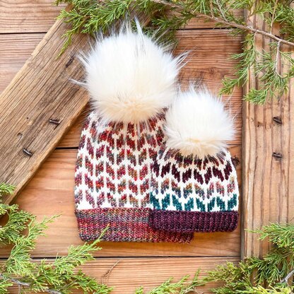 I had so much fun designing this worsted weight pattern. The stranded colorwork pattern resembles knit stitches. This unisex pattern is such a quick and fun knit. The beanie pattern comes in 5 sizes: Baby, Toddler, Child, Adult S/M, and Adult L/XL. The pattern includes a chart and video instructions as well. It is great for beginners too because the distance between the color changes is such that you do not need to catch your floats!