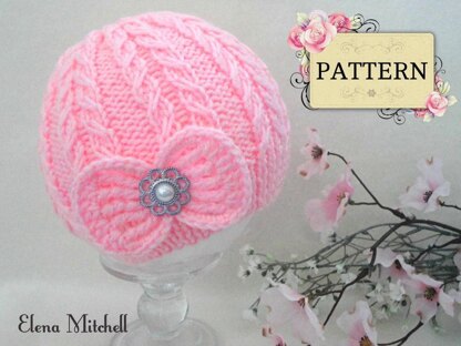 Knitted Baby Girl Hat with Crochet Bow by Elena Mitchell