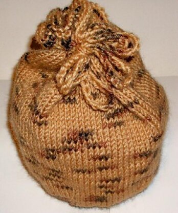 a knitted bag that is made flat, then sewn shut.