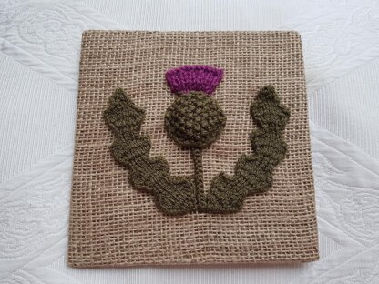 A thistle knitting pattern to celebrate a Jubilee, or add a Scottish touch to your home. Sew these little pieces onto a blanket or sew them onto some hessian to show off in a box frame! Other flower knitting patterns available separately (seen in the last picture) to build up your collection of knitted flower pictures.