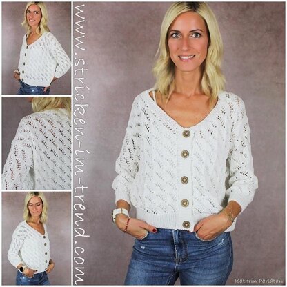 The rhythmic lace pattern offers breezy comfort and is a joy to knit. Included are sizes S–XL with schematics and edging layout, plus one chart excerpt for clarity.