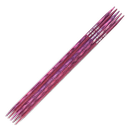 This set of 5 Symfonie Dreamz 8" Double Pointed Needles from Knitter's Pride are so gorgeous that we think they will soon become your favourite DPNs. Featuring polished wood surfaces and perfect points, they work effortlessly with all types of yarn, while also being lightweight, strong and flexible. Each size is a different beautiful colour.