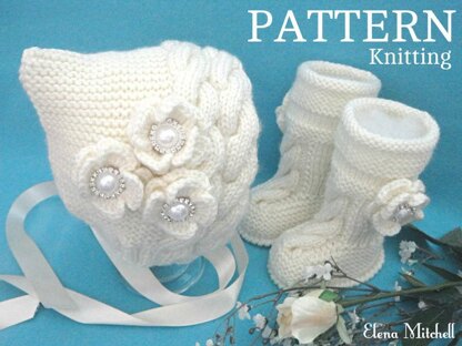 Knitting PATTERN Baby Set Baby Girl Newborn Baby Bonnet and Uggs