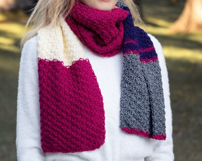 The knitted scarf with asymmetric stripes is a gorgeous garment that uses the simple but beautiful double seed stitch pattern that creates a wonderful texture that is eye-catching. This pattern is a great way to use up yarn ends. The warm and cozy yarn will keep you comfortable during chilly days. Use this easy pattern to create a stunning accessory that goes with so many different outfits.