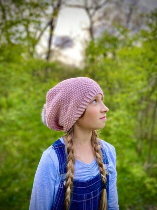 I love the look of textured knits and oversized beanies. This hat is the best of both worlds! The brim is knit in a tight rib on smaller needles, then relaxes into a larger sized body. With a simple 2 row repeat, you may wish to add less or more length than the recommended height. Paired decreases allow the textured pattern to remain throughout the crown and give it a looser squared shape. Two sizes, adult and child are included in the pattern.