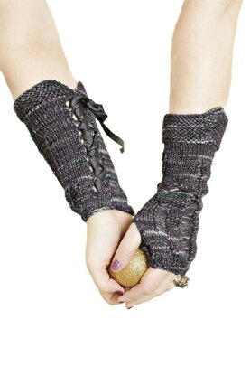 Once upon a time, a mean girl named Bellatrix had a pair of magical vambrances. She wore them whenever she had to battle muggle loving wizards. Over time, they became a little tattered, so now she often wears them all time time as fingerless mitts, but sometimes she still wears them just as arm warmers. You never know when you have to face the Potter brat skulking around Knockturn Alley, might as well do it in style!