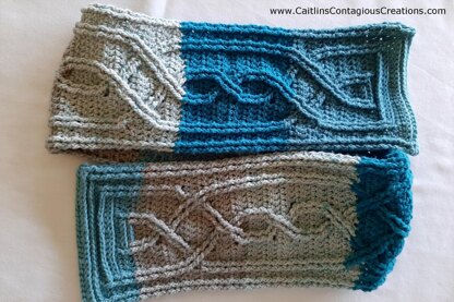 The pattern features written directions with photos to make this winter scarf. The pattern calls for worsted weight, size 4 yarn and an I9/ 5.5 mm hook. For this intermediate level pattern, you should know how to complete double and treble crochet stitches and post stitches. You will need to create crossed stitches to work the cable pattern. I provide a quick tutorial for this in the pattern.