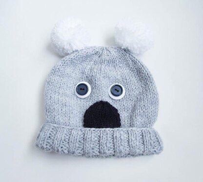 Adorably cute Koala Animal Baby Beanie Hat. Very easy and quick to make with lots of pictures to help you along the way. This hat pattern is knitted flat on 2 needles and seamed up the back and is entirely knit. It will look adorable and keep your cutie snug and warm