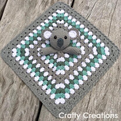 This written crochet pattern (in US terms) provides instructions to make a koala lovey (or security blanket), and the finished product makes the perfect gift for a baby or toddler!