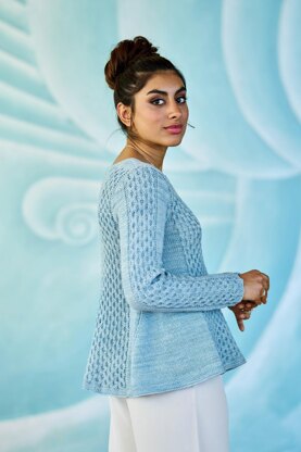 Kolga is Norse for a cool wave, like the one created by the Honeycomb cable pattern on this pullover. The A-line front moves the side seam and vent backwards, making it flow like waves. Kolga is knitted in the divine hand dyed Walk Collection Merino Sport yarn, in pieces and seamed for the ultimate fit. A folded down cowl gives the pullover a collar, while a standing cowl warms your neck.