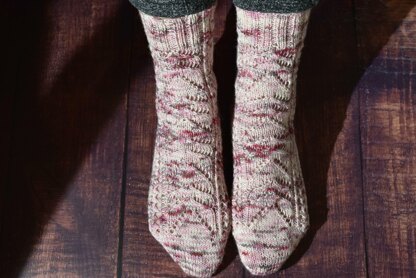 Inspired by the Russia, thoses socks are textured with a simple lace pattern in 3 sizes.