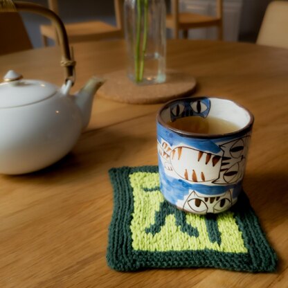 This Amimoji design will produce a single-side knitted coaster using a Korean Hangul character, Cha (차), meaning tea, as well as a reversible coaster using Korean Hangul characters, Mul (물) and Sul (술), meaning water and alcoholic beverage.