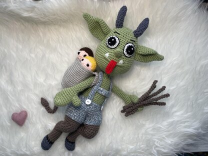 With yarn length 150m/50g this doll is about 45 cm high.