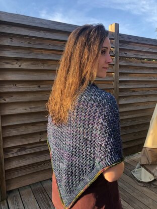 A cute triangular shawl that can be made 24 inches in height or longer, just continue the pattern stitch. I made mine 24 inches so I can wear it easily around my neck and over my head. The pattern stitch is fun to do, and the finishing is done with a contrast color of Washted, in an I cord fashion, stitches are picked up along both side to do the I cord as well. The other option is to bind off, and just leave it be, or add a reverse crochet all around