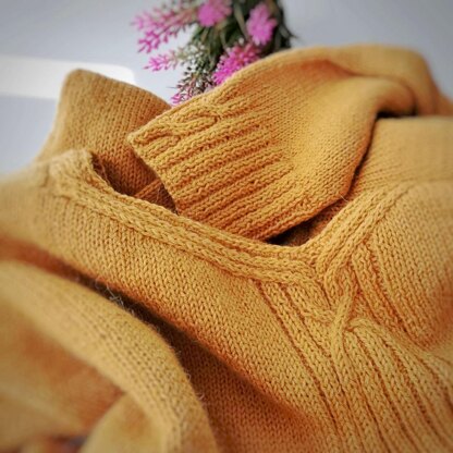 La Dijonnaise pullover is accented with winding cables at the hem, cuff and neckline, designed with subtle A-line shaping, modified drop shoulder and sweetheart neckline, providing for a more fitted silhouette.