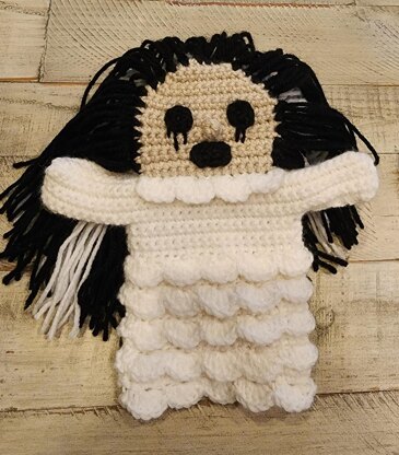 To make your Halloween extra spooky, crochet this La Llorona Hand Puppet using worsted weight yarn and a size G hook.