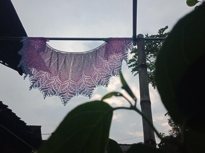 La Mia Bellezza is a crescent shape shawl that begins from the top center, featuring a modified garter tab cast on that eliminates the “bump” that is common with crescent shawl shape. The shawl is adjustable in size and can be worked in 5 different sizes depending on the amount of repeats you choose to do.
