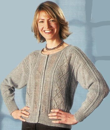 This delicate lace cardigan in Jamieson & Smith 2ply Shetland Lace was first published in The People's Friend in 2003. Knitted flat, it features twist rib, lace and cable panels, set-in saddle shoulders, a short section of raglan shaping at the Back neck a picot neck edge and front buttoned closure picked up at right angles to the Fronts . The jumper version, not previously published, is also included in the pdf pattern. Although it looks a little complicated, for a lace cardigan, it is a reasonably easy knit as it has no armhole shaping and the lace panels use fairly simple stitches - probably a good first lace cardigan for a budding lace knitter.