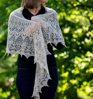 The first ever Lace Eater Mash-up! Sometimes certain lace motifs really take my fancy, and I think they deserve another chance to shine in a beautiful design. In this delicate, laceweight crescent shawl I have used some of my favourite motifs from previous designs including: Biophilia, Herbfield, Seaward, and Ribbonwood. Lace stitches open up the fabric while cables draw together stitches in sweeping lines of denser fabric to create visual interest. I created a simple border featuring a sequence of single buds which gives the piece a delicate scalloped edge.
