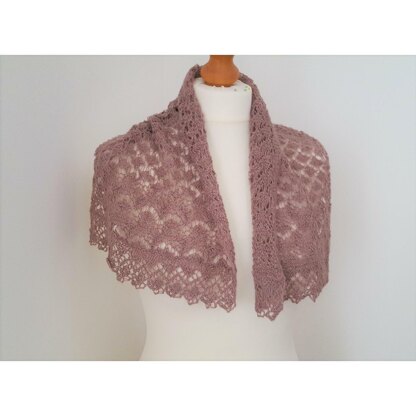 This pretty lace scarf comprises 2 lace patterns and a lace edging added at the ends. It looks lovely knitted in an alpaca mix soft yarn as a short scarf.