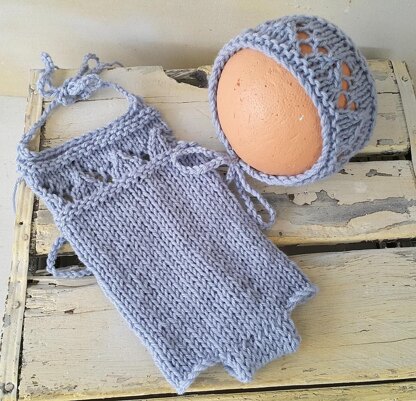 knit a Double Knit (light Worsted/ 8 ply) Newborn Baby Lacy Baby Bonnet and Romper Set