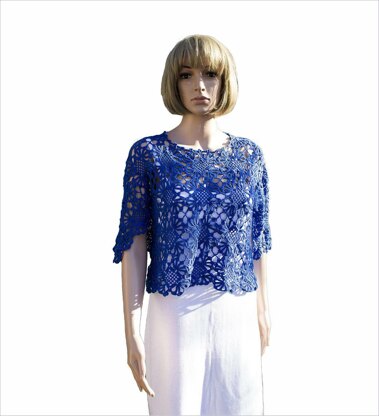 Crochet top pattern is easy for beginners. The pattern allows you to make size S M bell sleeve top. It includes: - two motif written descriptions, - two motif charts, - the assembly diagram, - the tutorial on how to join motifs, - neck line edging tutorial and - sleeve line edging tutorial.