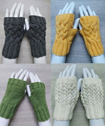 Includes instructions to make Fingerless Gloves in 4 Designs, 2 x Cable designs and a lacy or Plain design.