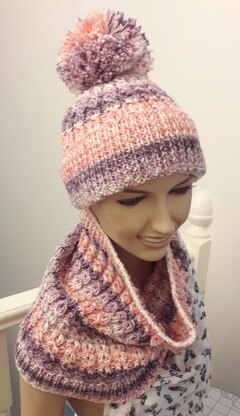 Ladies Hat & Cowl Mock Cable Aran Yarn