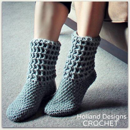 These gorgeous ladies crocheted boots feature a soft, waffle textured cuff to keep your legs snug and warm.