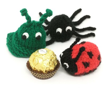 HERE IS A PATTERN FOR A Caterpillar, ladybird and spider, sized to fit Ferrero Rocher chocolates