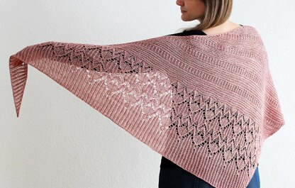 This beautiful triangular shawl features a delicate lace motif and twisted ribbing to create an elegant item for your favourite wardrobe.