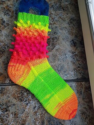 The Lamb's Tail Socks are ‘bed socks’, ‘house socks’, or ‘boot socks’; that is, they are thick, warm, and comfortable with a bit of whimsy in the form of wooly lamb tails (these are not bobbles) on the cuff. Knitted with worsted or DK weight yarn, they are a quick knit to warm toes fast or to give as a gift. Knitted with wool, they will be good socks to wear in boots for hiking or winter warmth. The Lamb’s Tail Socks have a purl background, so if you like to purl, these are the socks for you. Not in the mood for showing off your little lamb's tails? Not a problem with these socks that are reversible to a textured leg.