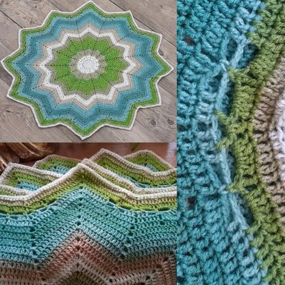 This beautiful 12-Pointed Star Blanket is a perfect gift for a Baby, a Child or an Adult! You can recreate this delicate blanket easily; only a small number of basic stitches are required, making this blanket a 'must-try' for beginners. The apparently intricate pattern of dragonflies, marked out in the blanket’s border, can be achieved using easy to master stitches. Photos of the techniques used for the special stitches are included for ease of reference, together with clearly written instructions. A uniquely beautiful blanket can be created in a relatively short time, and would make a perfect 'Handmade With Love' gift for both young and old! This pattern would work with any weight of wool, and gauge is not important.
