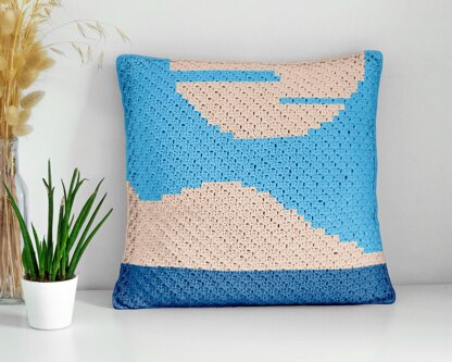 Landscape pillow Pattern - crafted using the mini Corner-to-Corner (C2C) crochet technique, this calming pixel design is perfect for decorative cushions, cozy bolsters, or as a tranquil accent in a larger throw or blanket.