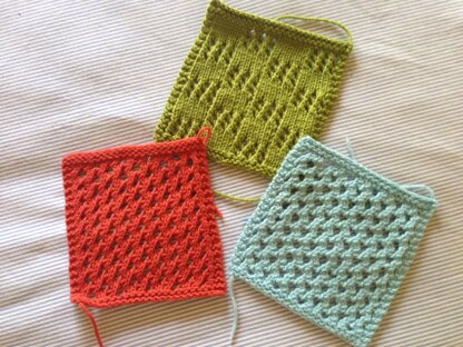 Knit flat and at a loose tension, these squares employ simple lace techniques for a quick knit.