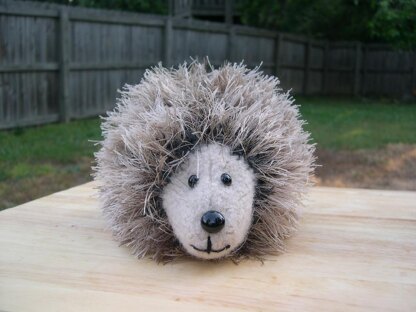 Both the large- and the medium-sized hedgehogs are knit in the round on size US 10 1/2 double-pointed needles with one strand of wool and one strand of eyelash yarn held together, until you reach the face. When decreasing for the face, the eyelash yarn is cut and you continue on with only the wool. After knitting, the hedgehogs are felted in the washing machine. The 8-page pattern includes complete patterns for both hedgehog sizes. I used Sirdar Foxy for the eyelash, as the strands are a little longer than in other eyelash brands.