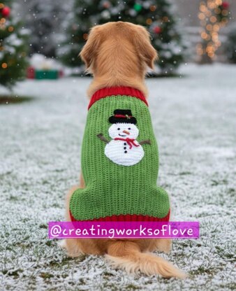 Dog Uglt Christmas Sweater in both Large & X-Large sizes... Pattern inc. Instructions for Multi colred sweater, Green and Red sweater, & Instructions For Striped Sweater... Also inc. are instructions for both Raindeer & Snowman Applique.