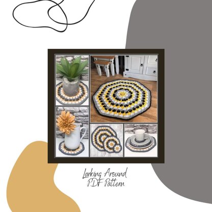 LARKING AROUND!! This listing is for not 1, but 2 patterns. The first is the "Larking Around Mat" which you will find on pages 1-8. These little mats can be worked up using Paintbox Aran Cotton, into 3 sizes and used as decor, table mats, coasters, re-usable face scrubbies, flannels or dishcloths. The second is the matching "Larking Around Rug" which you will find on pages 9-17. This is worked up using Paintbox T-shirt Yarn and gives instructions to create a stylish decor rug for your home.