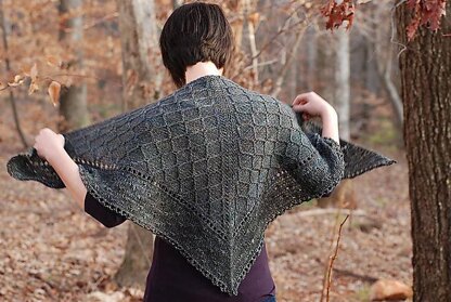 A slipped diamond stitch forms a simple yet striking lattice on this lovely shawl, a top-down triangle worked in single-ply dk or worsted weight yarn. The allover diamond pattern is worked with crossed stitches that are slipped on the wrong side. A cable needle is not required.