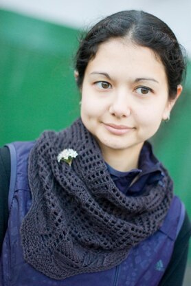 Knit from the bottom up, the scarf is shaped by decreases. Some of the techniques used are twisted decreases and kitchner stitch.