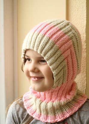 The hat part is knit flat, the neck part is knit in the round. Please make sure you have either double pointed needles or a circular needle if you are using magic loop.