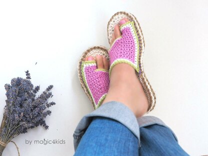 The pattern is written in English, American standard terminology with STEP-BY-STEP INSTRUCTIONS, VERY DETAILED PHOTO-TUTORIAL AND MATERIALS LIST for making these wonderful flip-flops with rope soles.