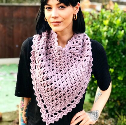 Construction: This is worked in one piece then joined to create a cowl that slips over the head and has the look of a shawl with its V-shaped front.