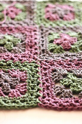 The colors in this blanket remind me of lavender and heather. The construction is join-as-you-go, making this table runner a cinch to finish. Such a lovely gift! Crocheted from cotton, it's both durable and lacy.
