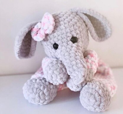 Layla is a snuggly little elephant who loves nothing more than a good nights sleep. She's made from a chenille yarn and is approximately 25cm once complete . She requires bascic colours changing and working in the BLO. Minimal sewing of the head to the body is required.